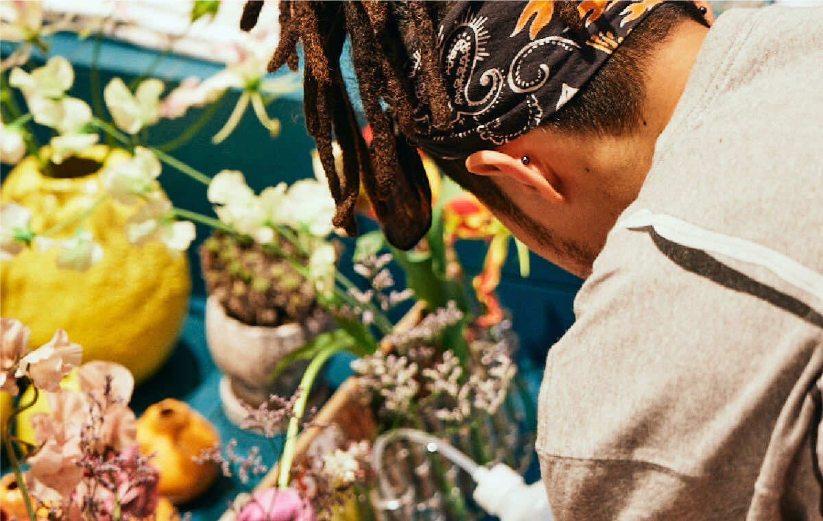 アトリエブースで手掛けた作品を60平米超えるスペース にカフェが併設された環境で展示や物販ができる。クリエイティブな空間で様々なアウトプットをその場でカタチにできることも&FREAK.の魅力のひとつ。